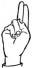 На ћирилици написано АНДЈЕЛИНА ДАБИЋ састоји се из 14 слова [?]. Исписано ћириличном једноручном азбуком за глувонеме: